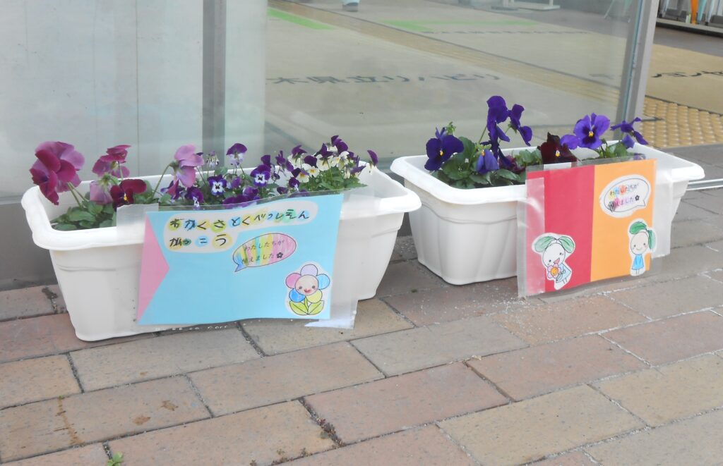 わかくさ特別支援学校の児童の皆さんが、パンジーとビオラのプランターを届けてくださいました。代表の児童の方が「頑張って植えました。花がたくさん咲くといいです。... -